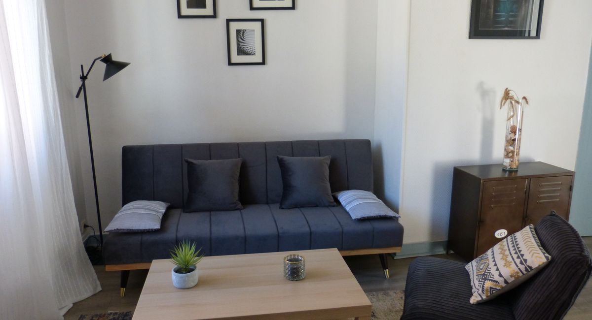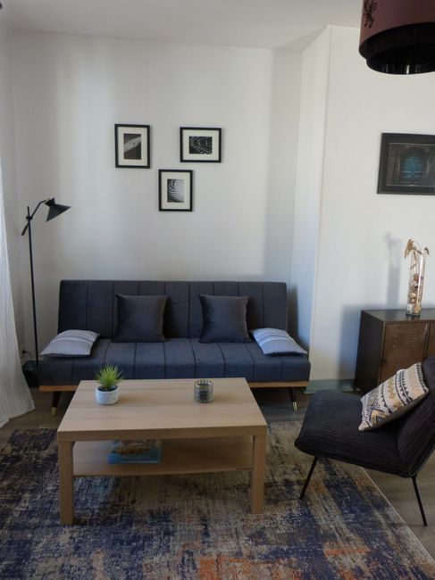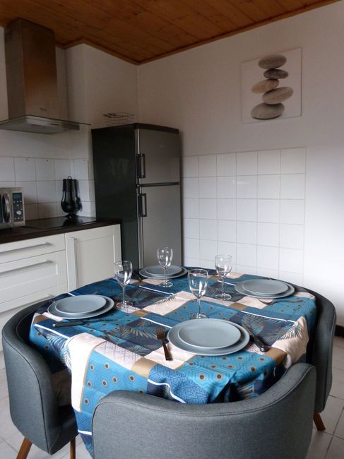 Exposé sud-est et nord, le logement propose une chambre avec un lit en 140, un salon avec canapé convertible, un WC indépendant et une salle de douche. La cuisine indépendante est tout équipée (cafetière 'Dolce Gusto').