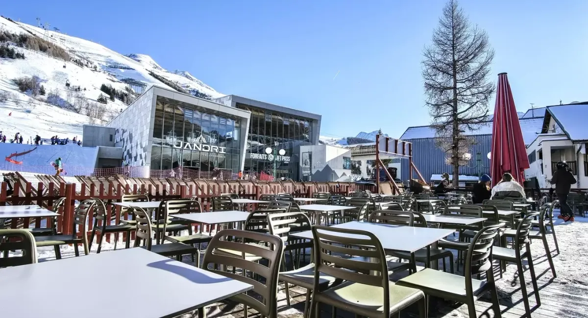 - Bar avec offre snack et grande terrasse solarium face aux pistes