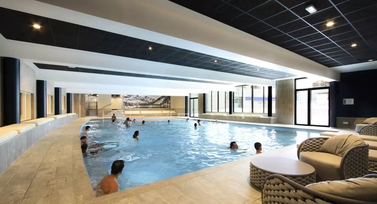 Durant vos vacances, profitez d'un espace bien-être avec piscine couverte chauffée et pataugeoire, salle de fitness, sauna et hammam ainsi que cabines de massages.