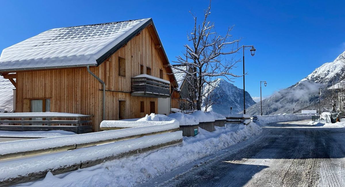 Avec une terrasse orientée plein sud, vous profiterez d'une vue magnifique sur le massif des Grandes Rousses et la cascade de la Fare, idéal pour vous détendre et profiter du soleil alpin.