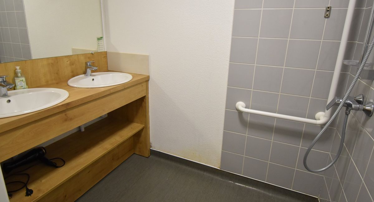Salle de bains avec toilettes séparées pour plus de confort et adaptées aux personnes a mobilité réduite.
